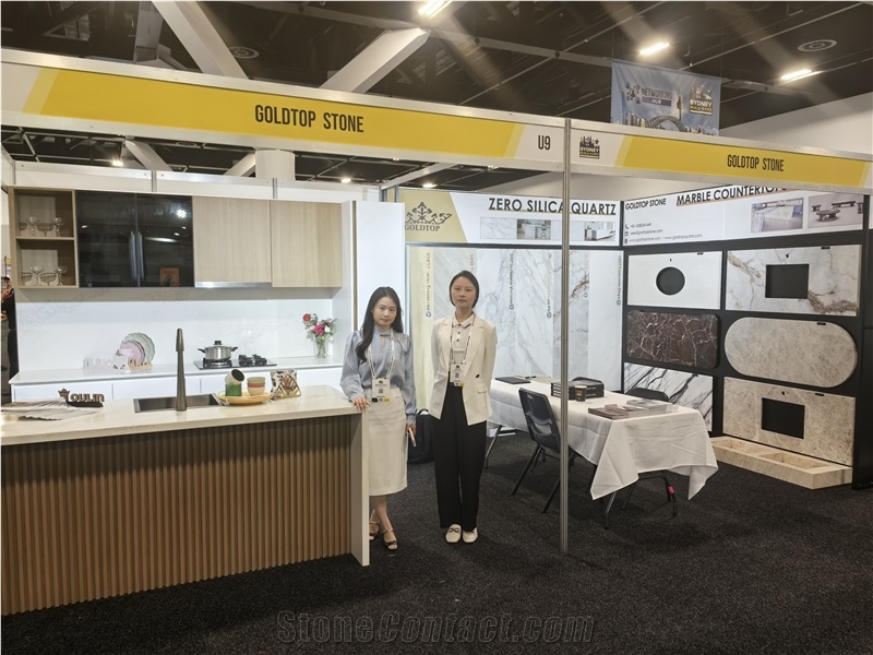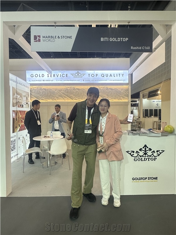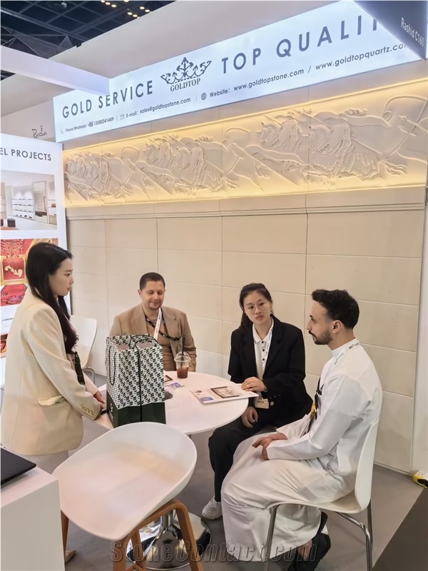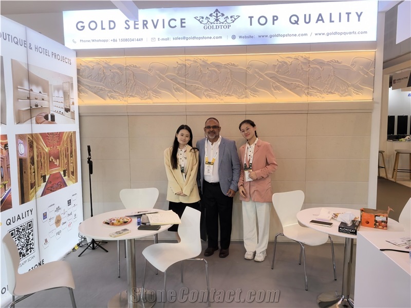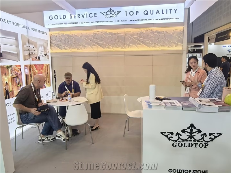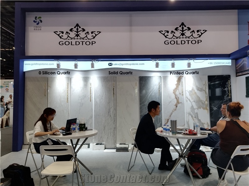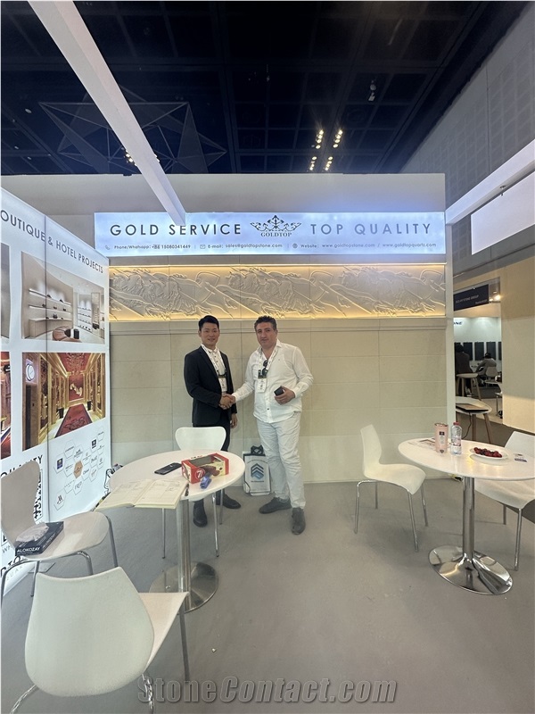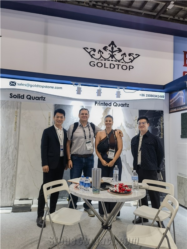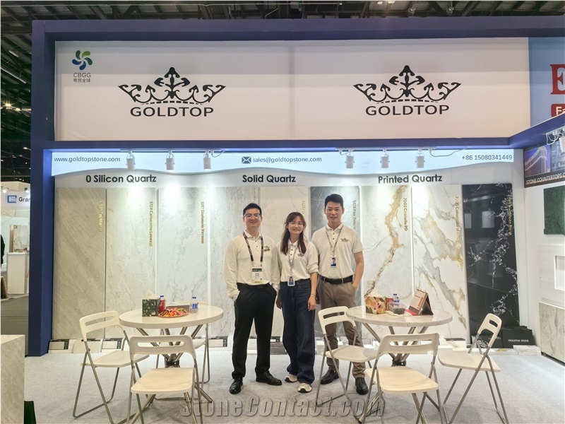 Gold service, Top quality. Goldtop Stone, a company specializing in integrated solutions for high-end stone and cabinet proiects. We provide global clients with a comprehensive end-to-end turnkey service, covering everything from material selection and design, pro-duction management,to internationalogistics, customs clearance and delivery services. Our factory has a variety of automation equipment, 150 employees, which can produce three million square meters every year. With a scientific research and marketing team who has the keen sense of smell, we are always keeping up to the design trends and providing our clients a wide range of fashionable colors and selection of thickness to meet different applications. We inspect all details strictly, provide products as customer requirement, The customer satisfaction survey collected every year is 9 8. 8 %. In addition, Our products have obtained SGS certificates. All of Goldtop's products are ecologically and environmentally friendly. It used widely in public and commercial high traffic locations. Our projects include the apartment, hotel, plaza, railway station. Such as Macao Lisboa Hotel, Las Vegas Hilton, London Crowne Plaza. Last year we exported 1000 containers, we can guarantee all the goods will be delivered on time. And in order to expand the market, We also began to accept the small quantity orders from homeowner. At Goldtop, we uphold our vision—to be the Huawei of Stone Engineering Projects—and remain committed to our philosophy: “Gold Service, Top Quality.”
